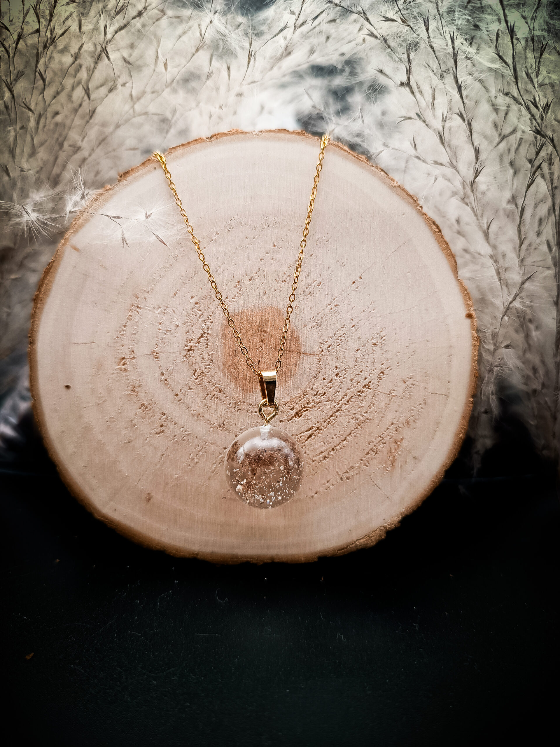 Die transparente Kugel lässt die feinen Einschüsse im Inneren sichtbar werden und macht jedes Stück einzigartig. Getragen an einer zarten Kette ruht die SeelenKugel sanft am Herzen. Als Zeichen der Liebe, die bleibt.
